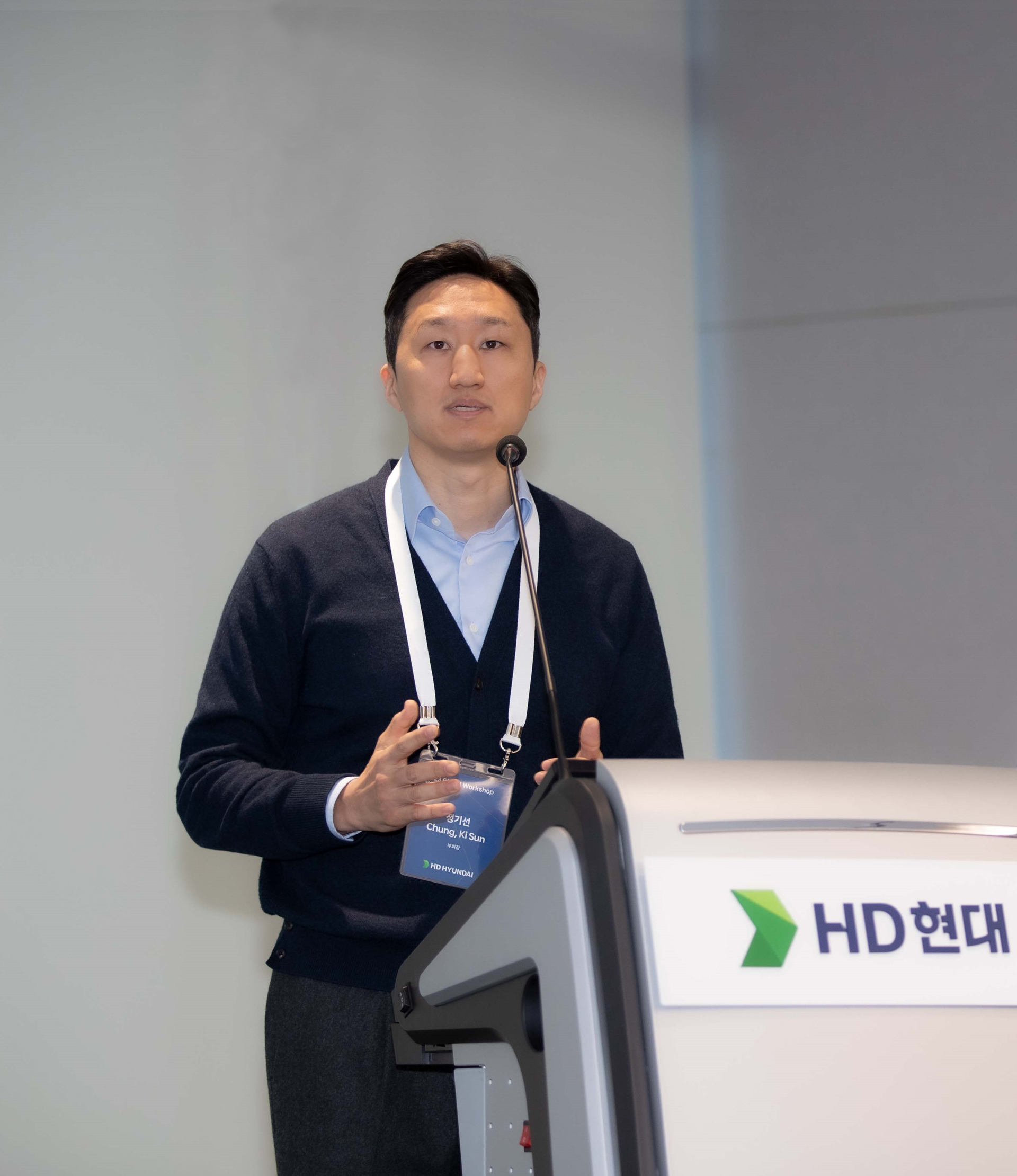 ■ Photo 1:  Vice Chairman Chung Ki-sun of HD Hyundai gives the opening address at HD Hyundai Construction Equipment’s “Global Workshop” held on December 4 (Monday) at the HD Hyundai GRC in Pangyo.