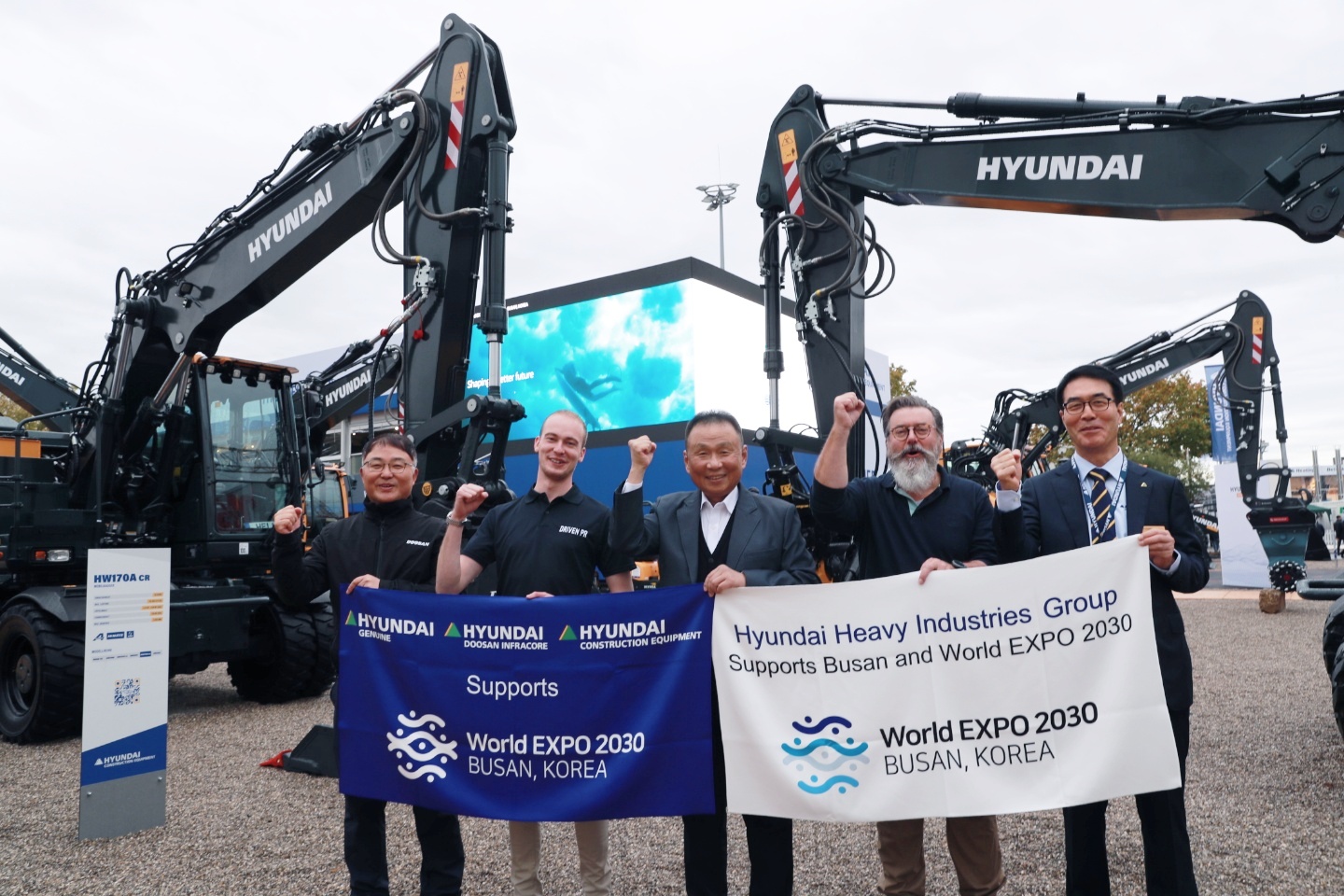 The three construction equipment businesses of Hyundai Heavy Industries Group (Hyundai Genuine, Hyundai Construction Equipment, and Hyundai Doosan Infracore) promoted a nationwide campaign for Busan’s bid to host World Expo 2030 during a large scale exhibition held in Europe.