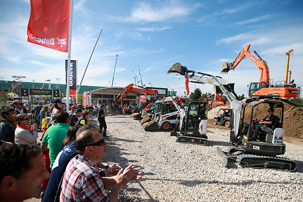 두산인프라코어는 ‘두산’과 ‘밥캣’의 브랜드 인지도를 높이고자 전시장 안팎에서 다양한 활동을 펼쳤다. 야외 전시장에서는 두산과 밥캣의 통합을 주제로 두산 중대형 장비와 밥캣 소형장비, 굴절식 덤프트럭이 음악에 맞춰 화려하게 움직이는 데모 쇼(Demo Show)를 진행해 관람객들의 관심을 끌었다. 또한 전체 부스에 일관된 광고 캠페인을 적용하고 전시장 입구에서 두산인프라코어 전시장까지 순환하는 두산 & 밥캣 브랜드 열차를 운영했다. 새로운 페이스북, 트위터를 론칭해 제품 사진, 동영상 등 생생한 소식도 실시간 제공한다.